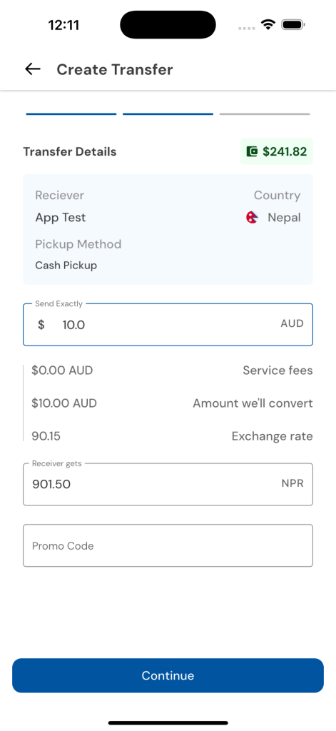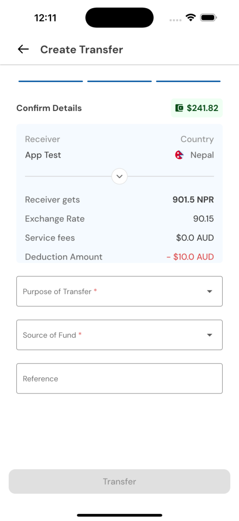 - Complete end-to-end money transfer flow from registration to transaction completion